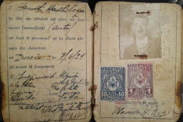 Leje shoferi (lejedrejtimi), është një ndër dokumentet më të vjetër qe kemi të ruajtur deri më sot, lëshuar më 7 Qershor 1929. Patenta i është lëshuar personit H.B lindur në Durrës.